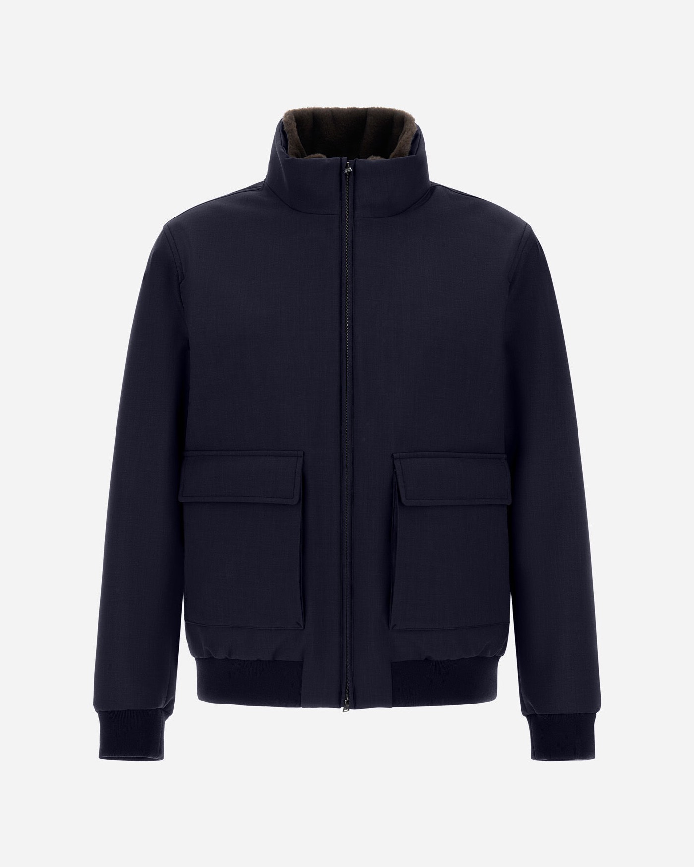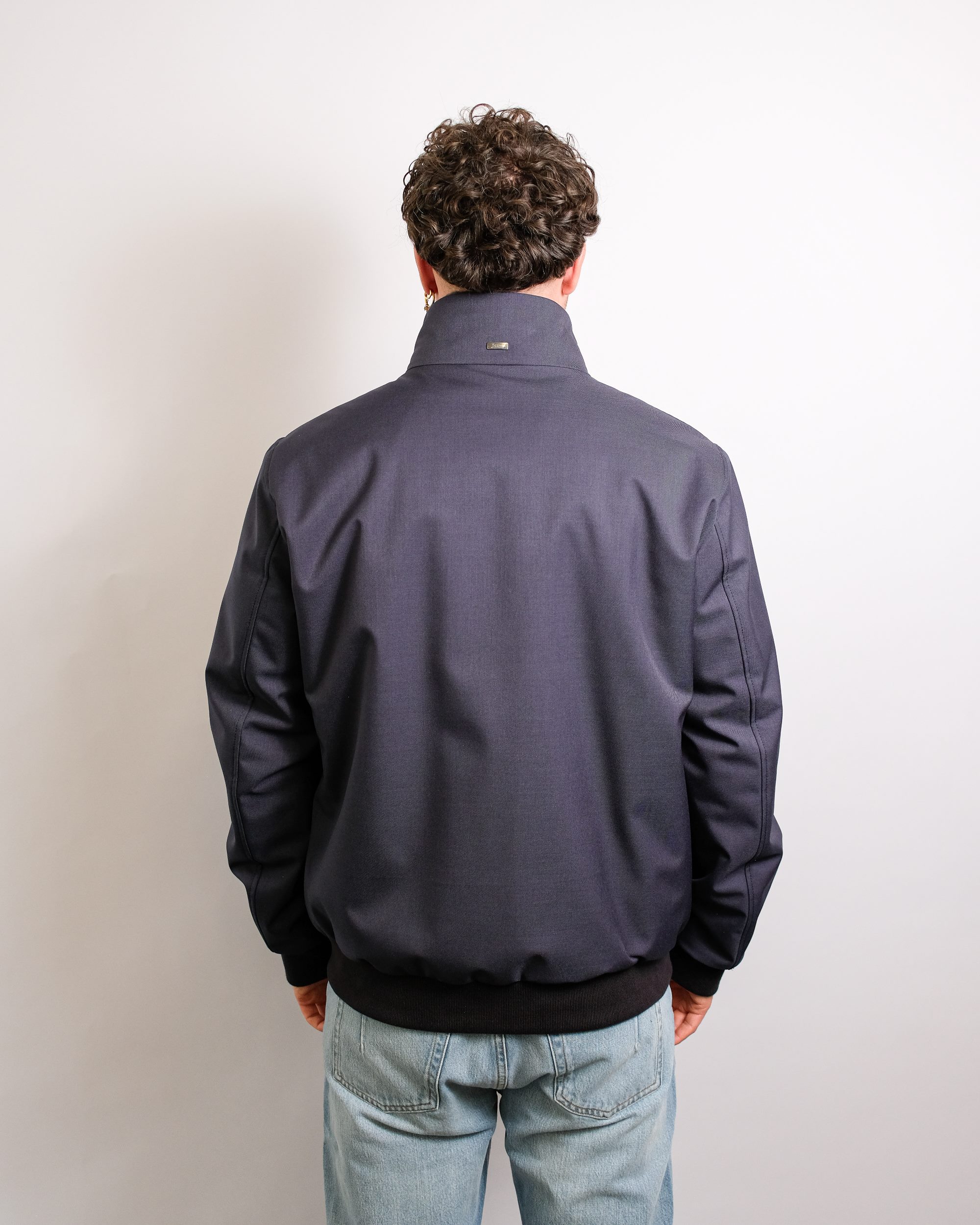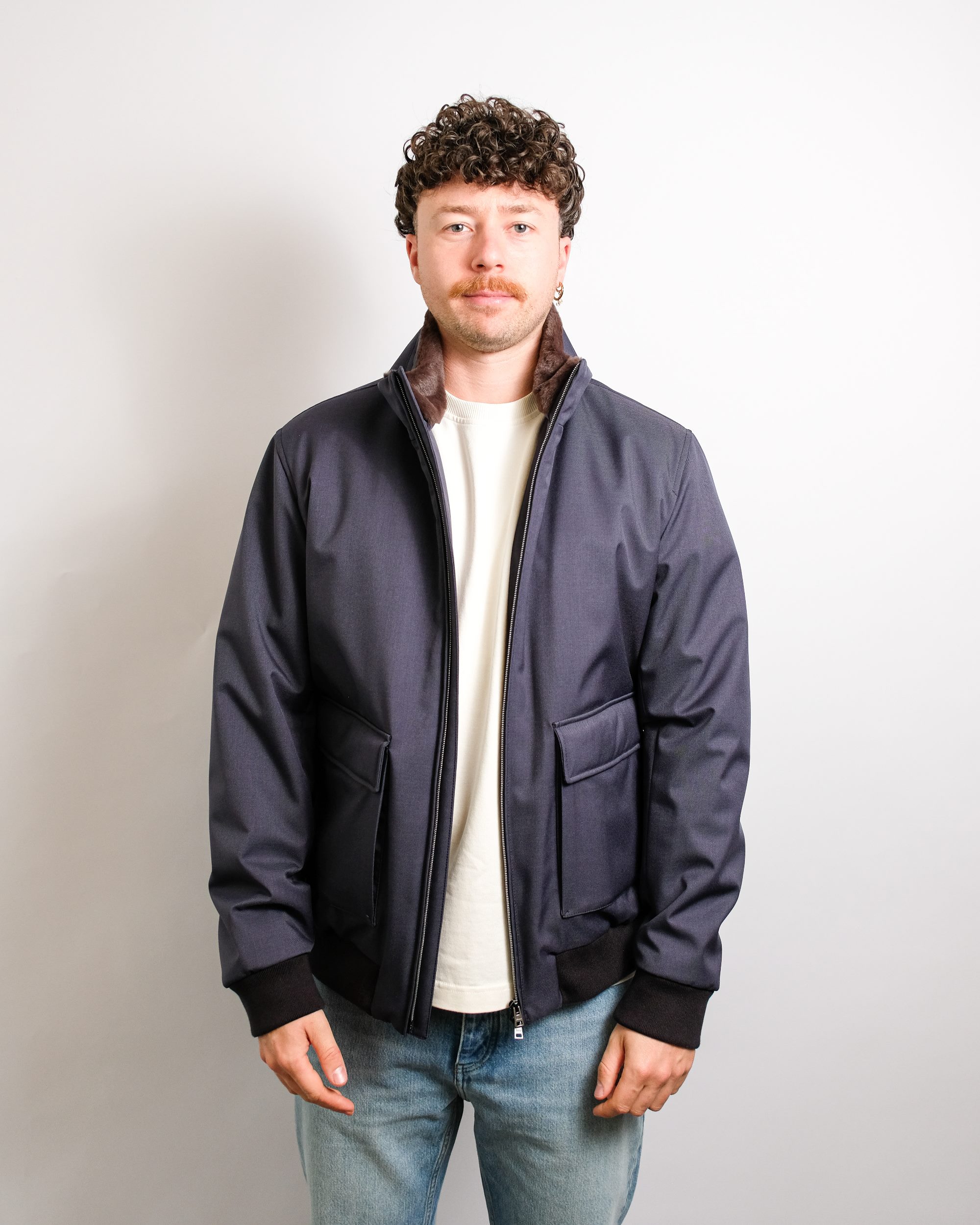 Bomber Jacket Woolen Melange Twill Navy
