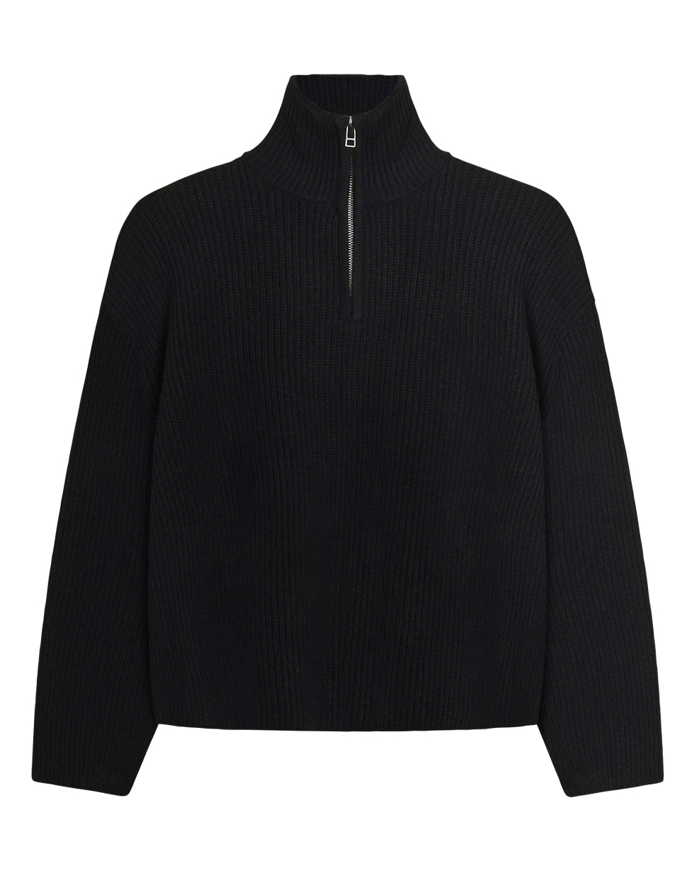 Black WBLee Wool Blend Ribbed Knit Half Zip Pullover