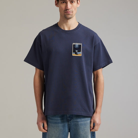 Night beach patch T-shirt Navy blue