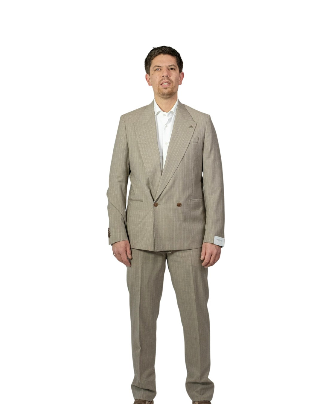 Beige Krijtstreep Double Breasted Suit
