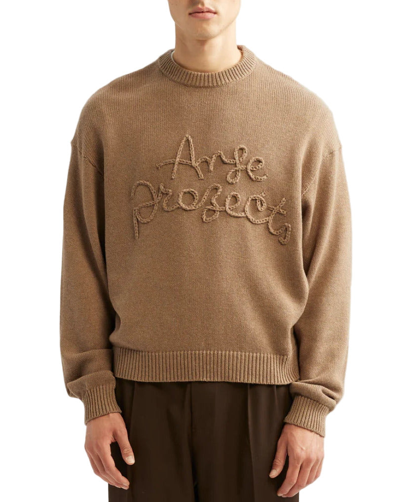 Brown Rope Wool Blend Embroidered Relaxed Fit Pullover