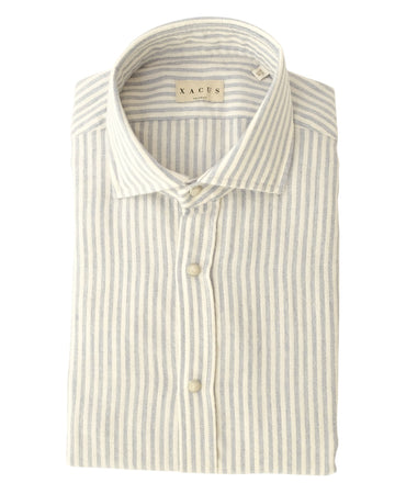 Grey Blue Stripe Flanel Shirt